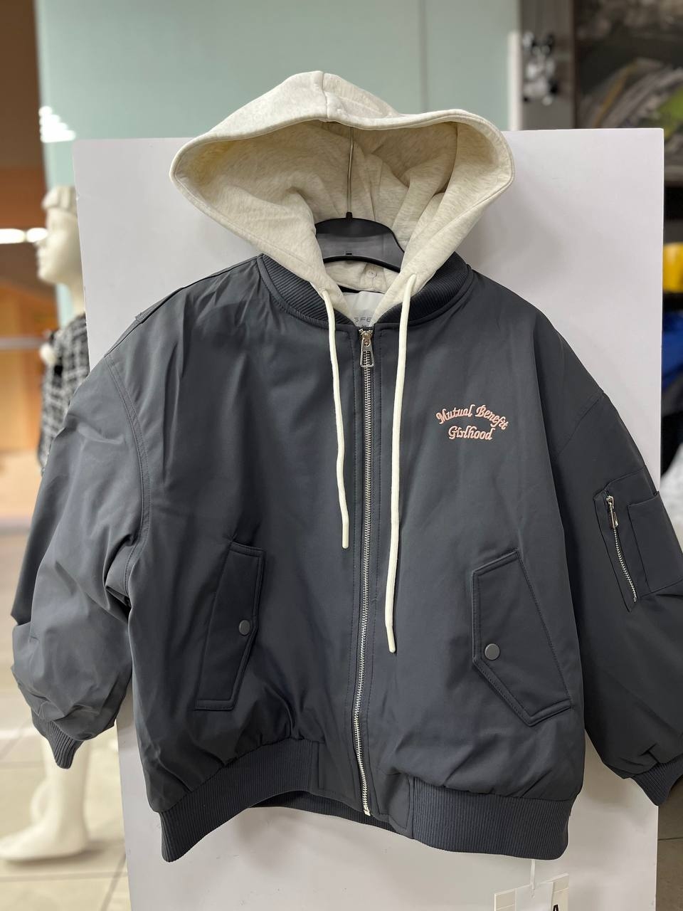 Демісезона куртка-бомбер для дівчат Gobolina Baby 8252552, колір сірий. Модель зі зйомним капюшоном.