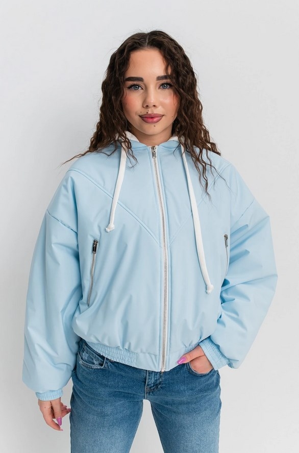 Зручні бічні кишені на блискавці дозволяють зберігати необхідні дрібниці. Довгі рукави зі зборкою на манжету з резинкою захищають від прохолоди та вітру. Комір-стійка у поєднанні з м’яким капюшоном створює додатковий комфорт, а центральна застібка-блискавка робить куртку практичною для щоденного носіння. Низ із поясом на резинці та підкладка завершують продуманий і зручний дизайн.