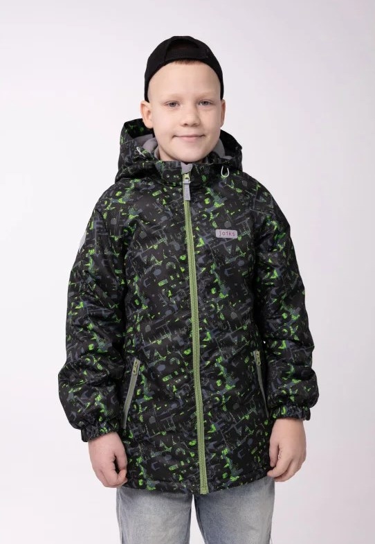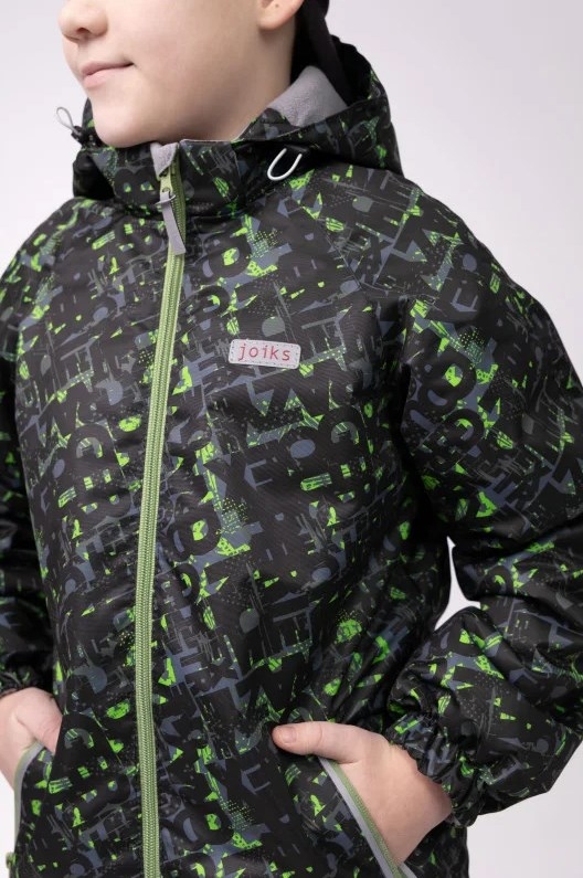 Демісезонна куртка-парка для хлопців Joiks ESP-15, колір чорно-зелений нової весняної колекції Джоікс забезпечує тепло та комфорт у дощову та прохолодну погоду.