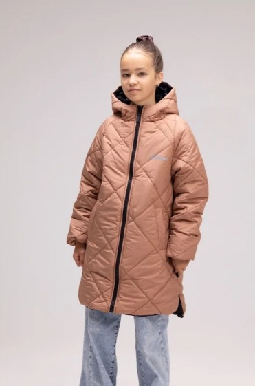 Двостороння стьобана подовжена куртка для дівчинки JOIKS WKD-03 в коричневому кольорі. Ця стильна куртка не тільки подарує вашим дітям тепло та комфорт в холодну пору року, але й стане справжнім модним акцентом у їхньому гардеробі.
