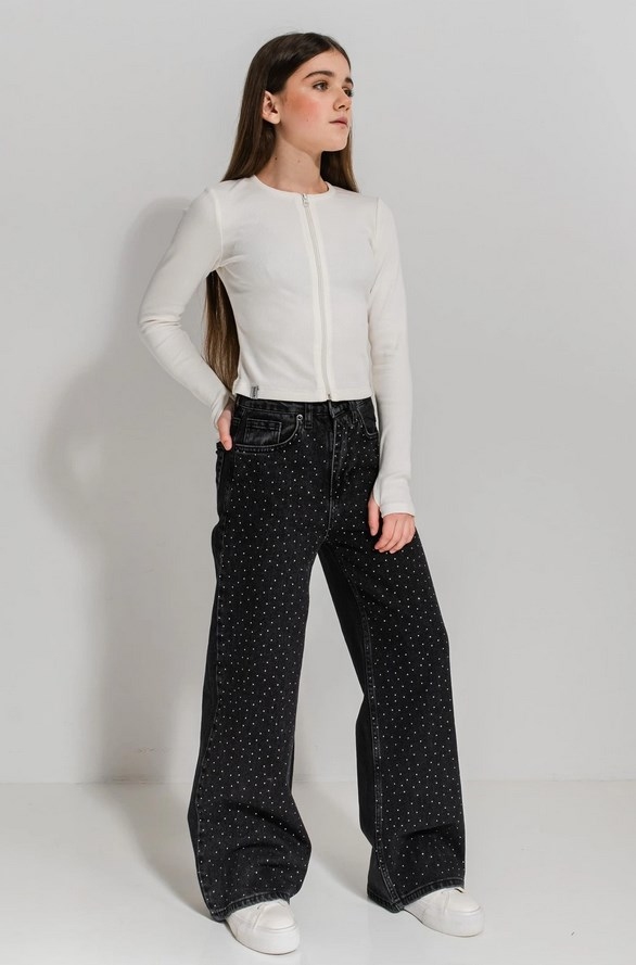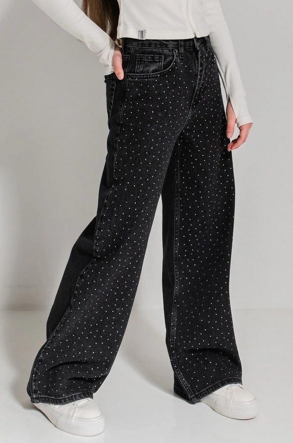 «Марлен» трендового крою палаццо, що візуально подовжує силует. Висока посадка чудово підкреслить талію. Застібка на блискавку та ґудзик. Родзинкою виробу є блискучі камінці по всій довжині, що зроблять твій образ оригінальним та неповторним!