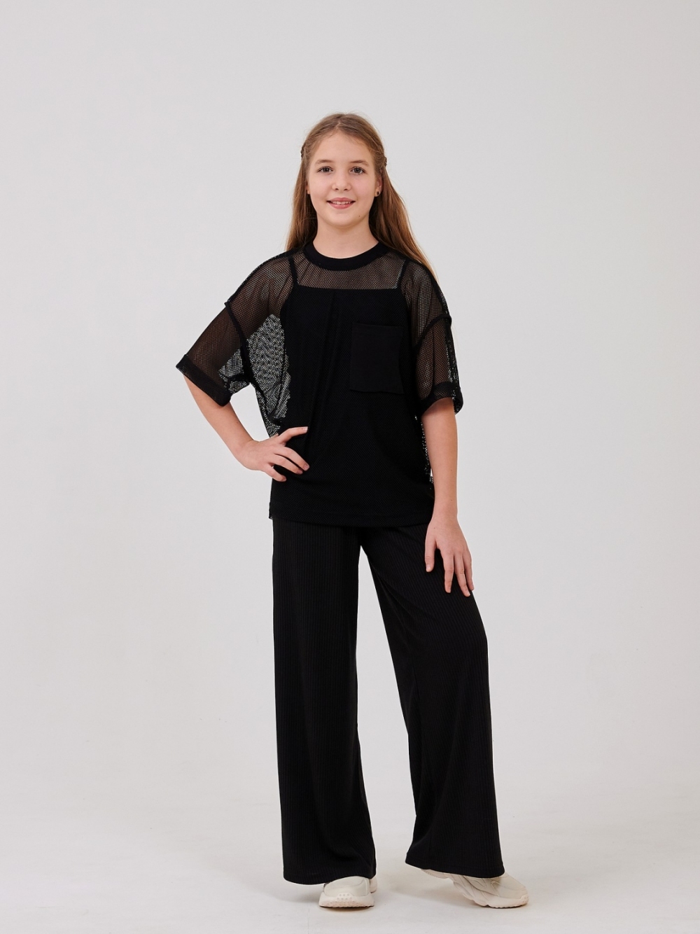 Комплект для дівчинки: майка рубчик + футболка сітка - ідеальний дует для літнього гардеробу! М'яка майка рубчик приємно сидить на тілі, а футболка сітка додає легкості та стильного об'єму. Зручно для прогулянок, активних ігор та відпочинку легко комбінується з шортами або джинсами. Легкий, модний та комфортний комплект, який точно стане улюбленим.