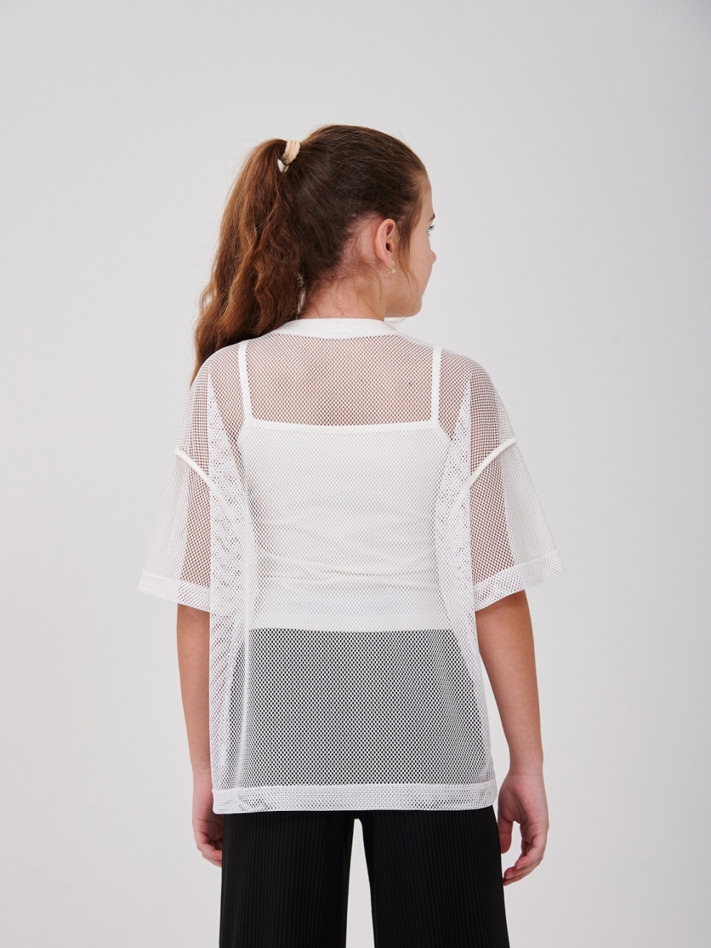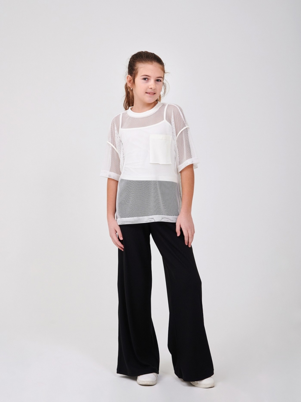 Комплект для дівчинки: майка рубчик + футболка сітка - ідеальний дует для літнього гардеробу! М'яка майка рубчик приємно сидить на тілі, а футболка сітка додає легкості та стильного об'єму. Зручно для прогулянок, активних ігор та відпочинку легко комбінується з шортами або джинсами. Легкий, модний та комфортний комплект, який точно стане улюбленим.