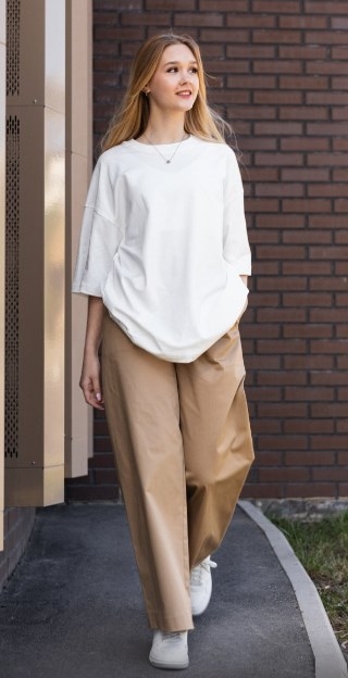 Літня футболка Filatova 473, колір білий. Якісна тканина та пошив. Базова річ. Короткий рукав, спущена лінія плеча, футболка має вільний фасон.