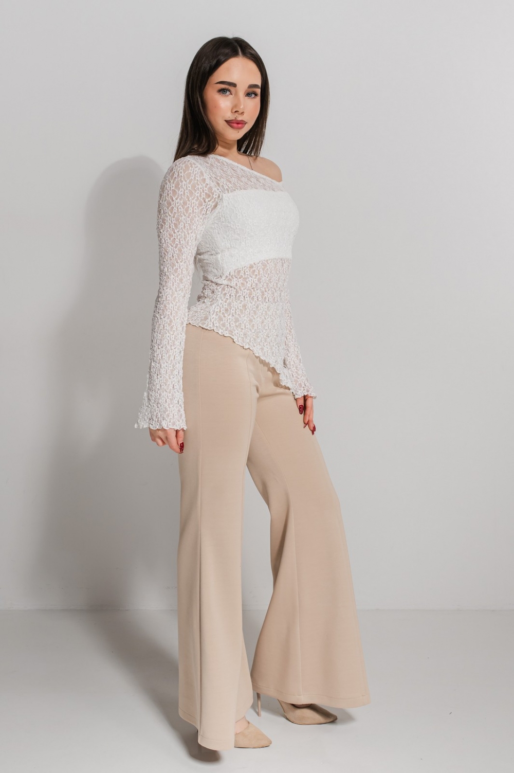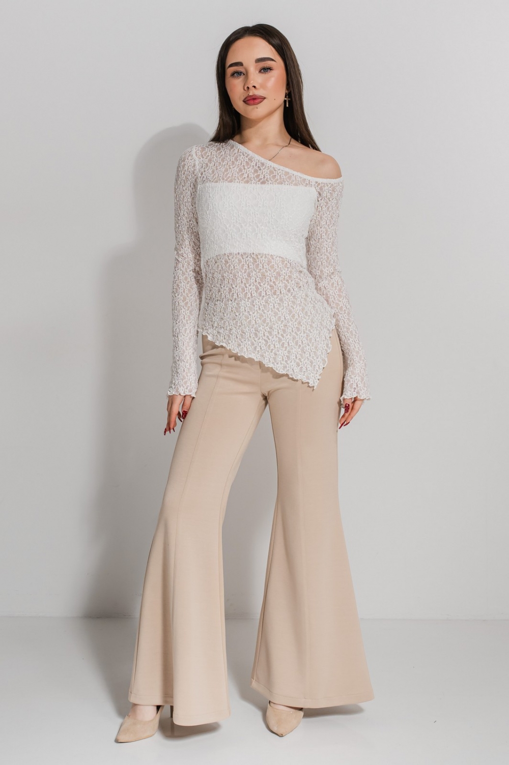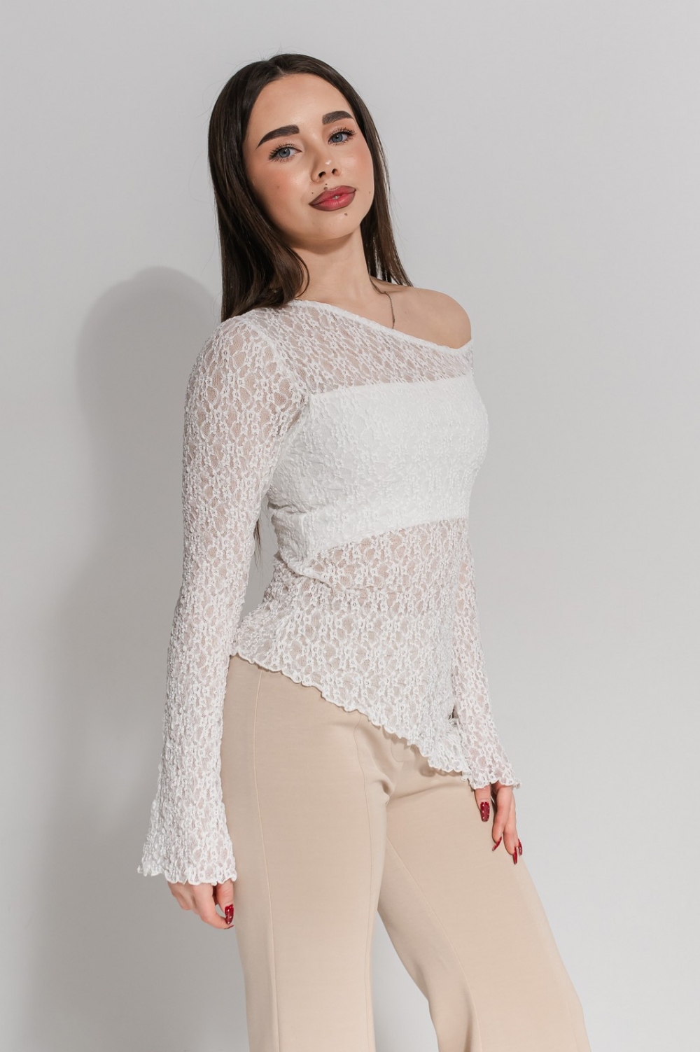 Кофта «Лоріта» повсякденного призначення, виконана з мʼякого еластичного гіпюру та трикотажу.