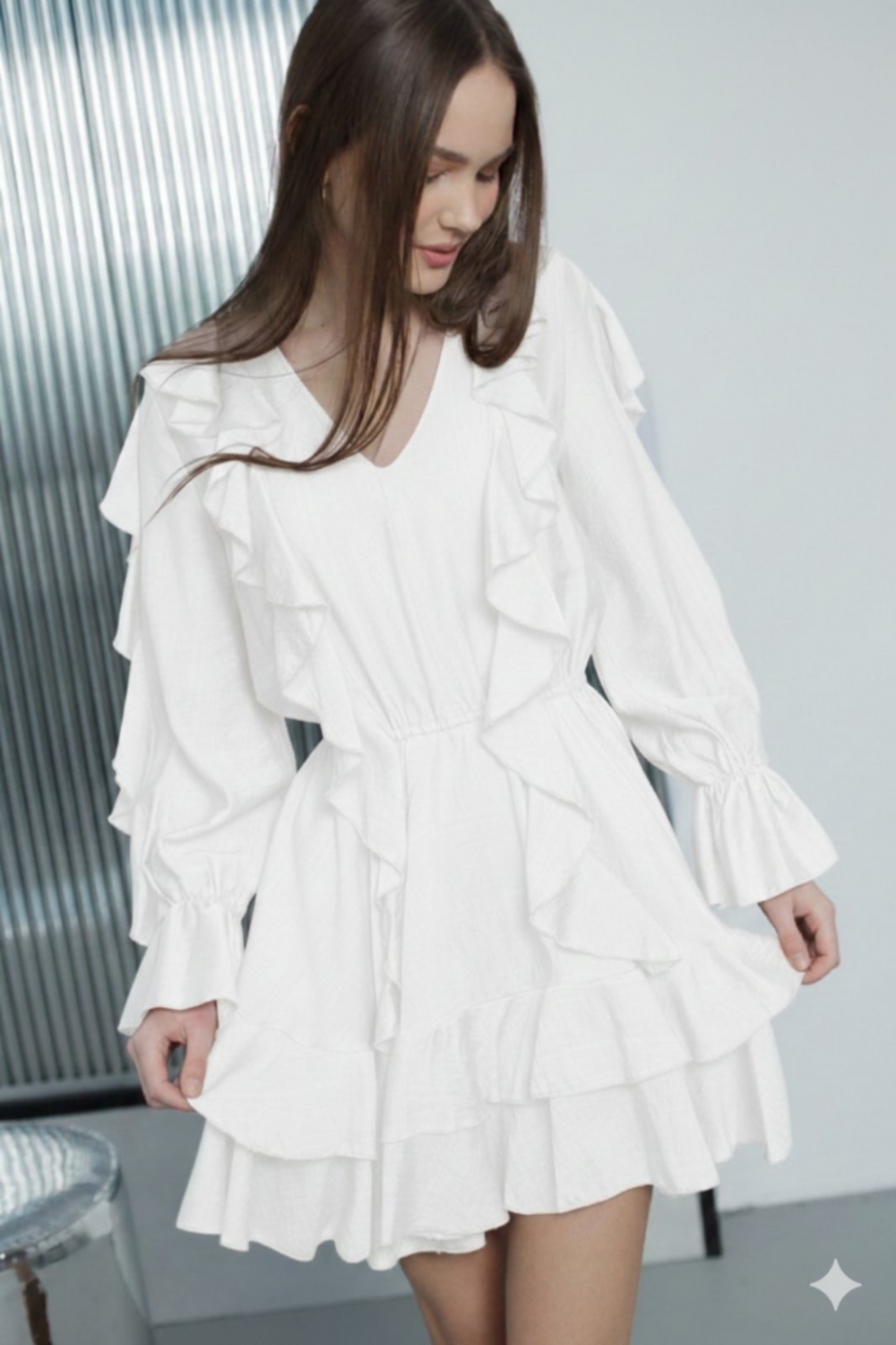 Нарядна сукня напівприлеглого силуету, довжиною вище коліна.