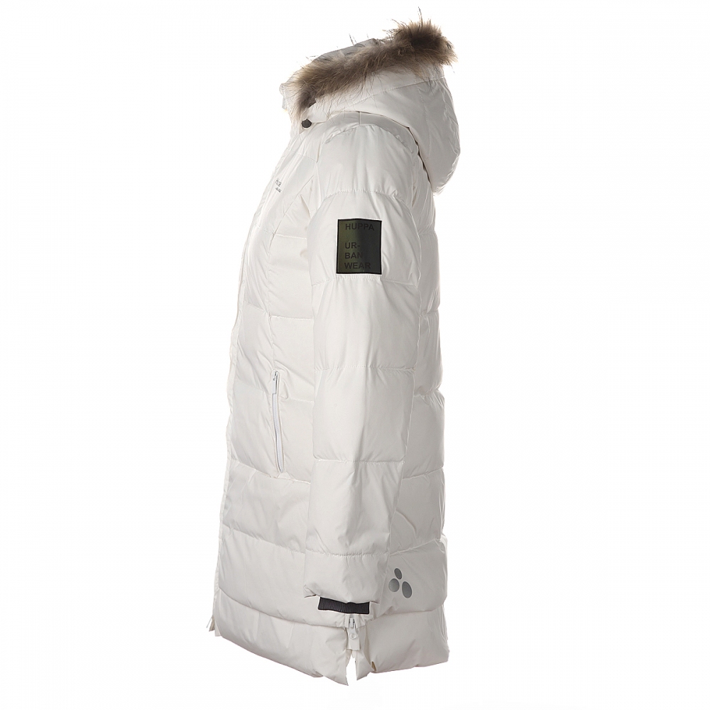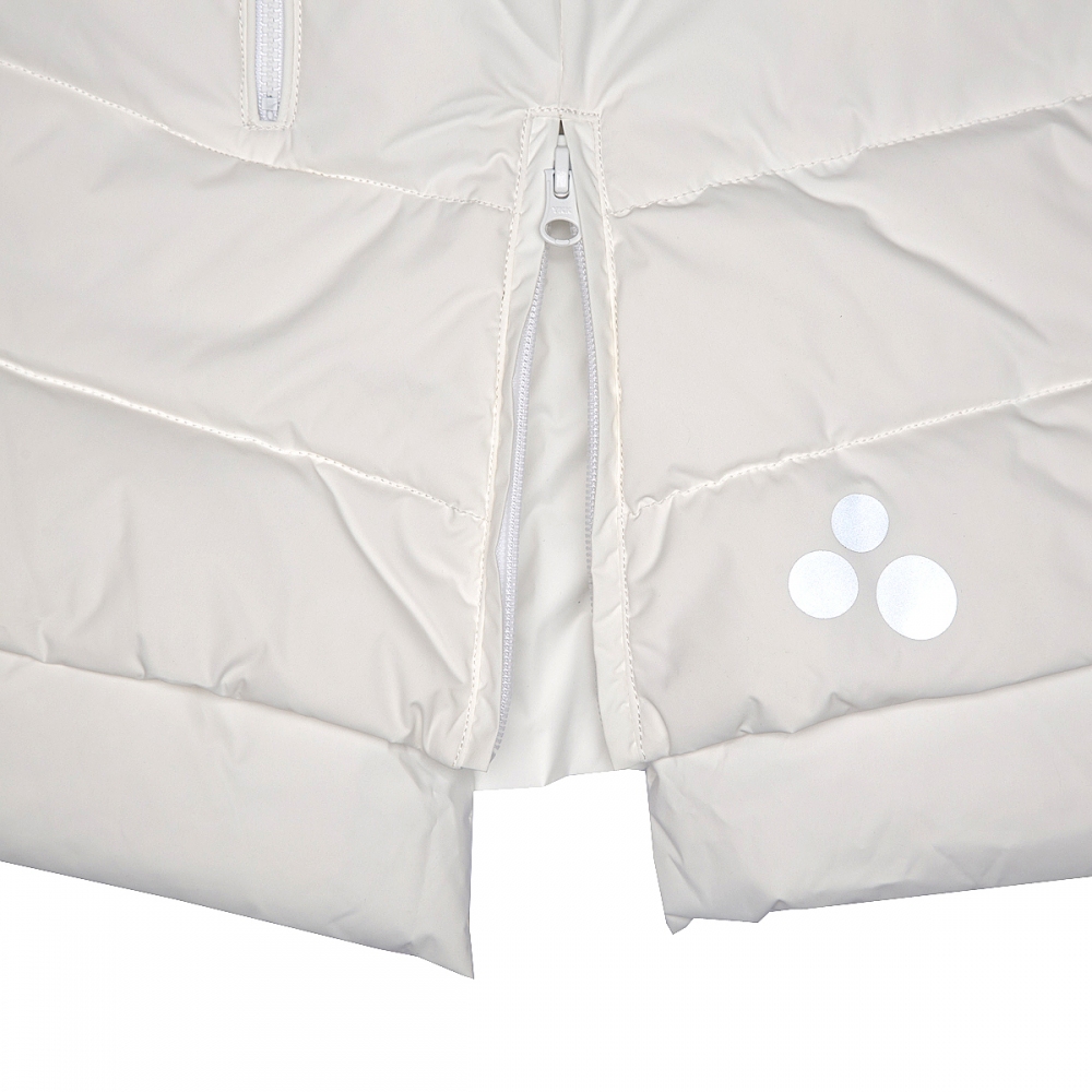 СОСТАВ: ткань мембранная - 100% полиэстер. Подкладка тафта - 100% полиэстер, из Tricot fleece (трикотажный флис) - 100% полиэстер. Утеплитель: натуральный гусиный и утиный пух 50% и 50% перо светлого цвета с высокими показателями теплоизоляции – 500-750 FILL POWER. Наполнитель размещен в дополнительную упаковку (пухонепроницаемые слои).