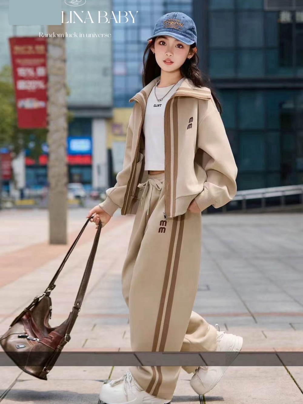 Спортивний костюм для дівчат Gobolina Baby 6081, колір бежевий з нової осінньої колекції 2025 року створений дарувати щастя. Світшот з високим коміром на блискавці та зручні штанці на резинці.