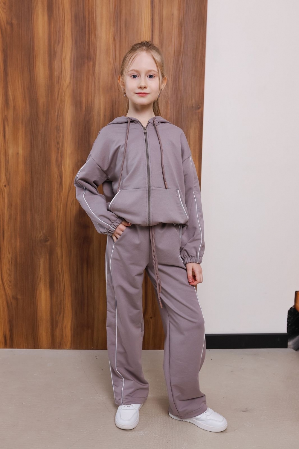 Оверсай худі та штани повсякденного призначення, виготовлені з 2-х нитки, широкі трендові штани-палаццо. Пояс пришивний на резинці.