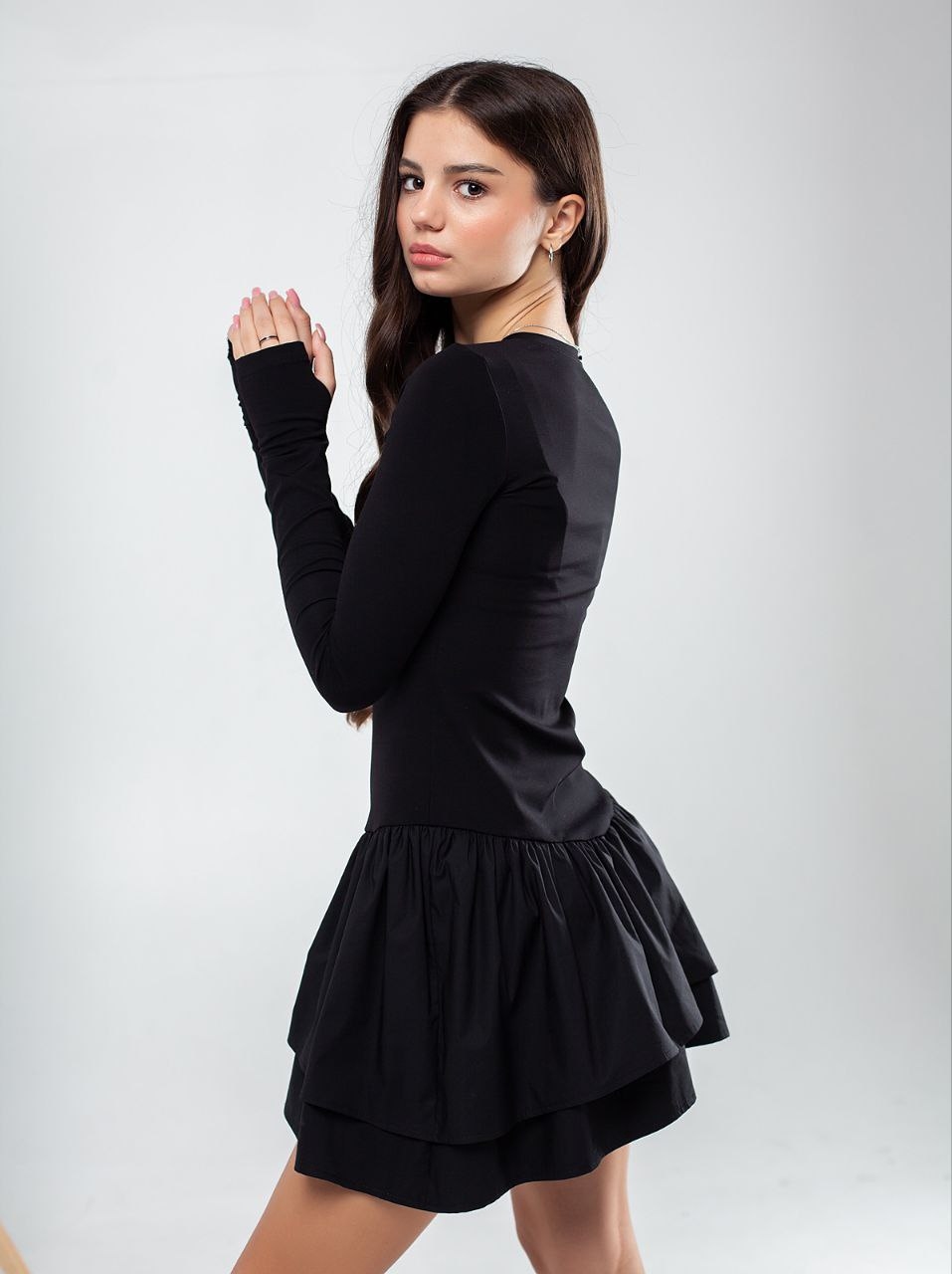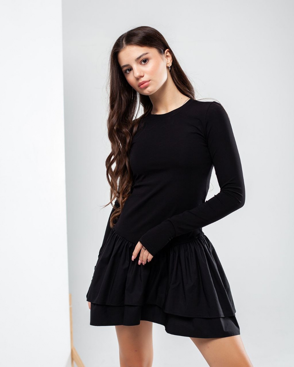 Трикотажна Wellkids з драпіровкою, колір чорний — ніжна повсякденно-святкова модель для справжньої модниці.