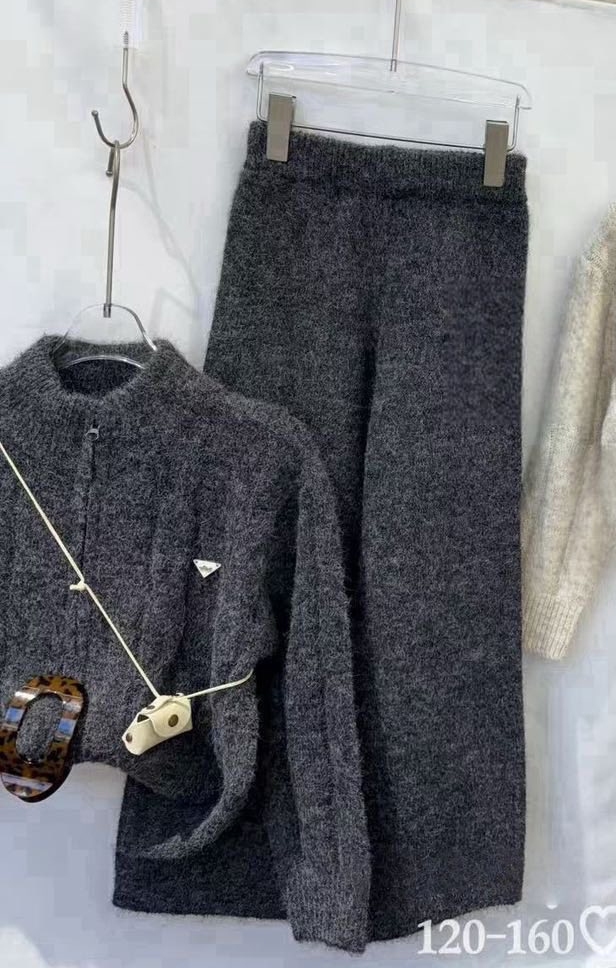 В`язаний теплий костюм-двійка для дівчат Gobolina Baby 2532, колір сірий з нової осінньої-зимової колекції 2025 року створений дарувати щастя. Світшот з високим коміром на блискавці та зручні штани-палаццо.