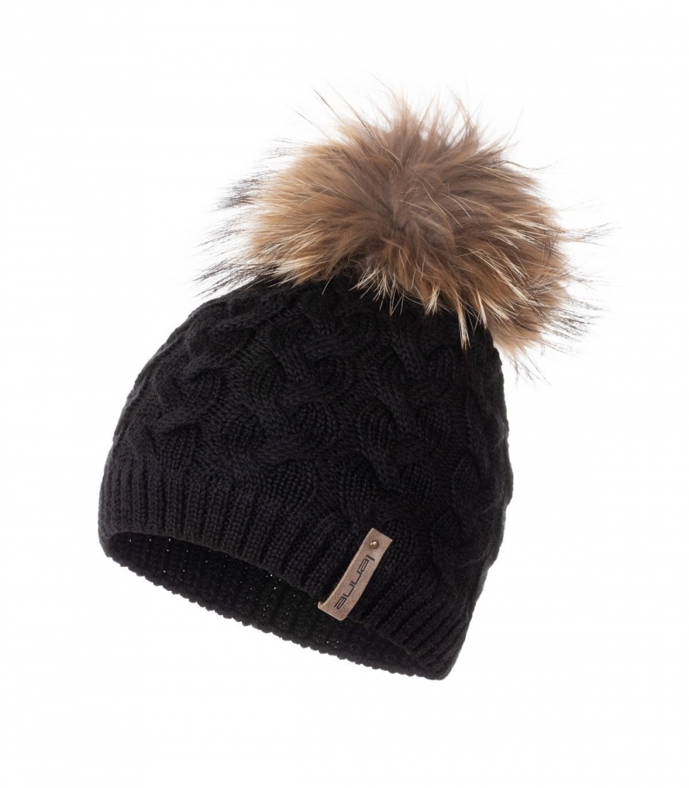 Зимова дитяча шапка з натуральним помпоном Lenne NORA 23391B, колір 001