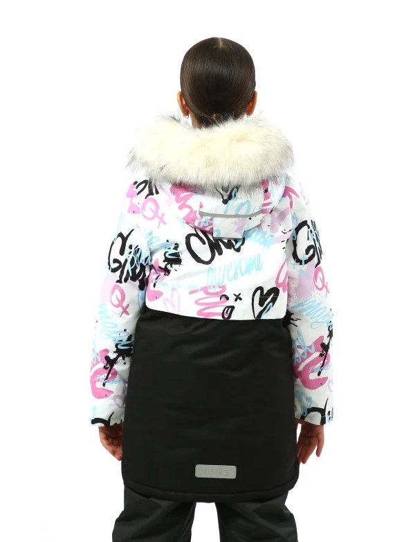 Зимова підліткова куртка-парка для дівчат Joiks G-68, колір білий з чорним