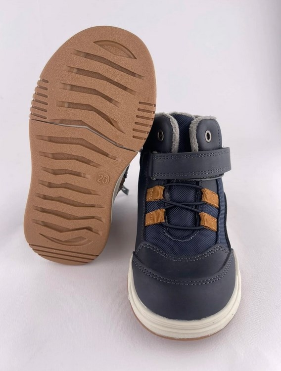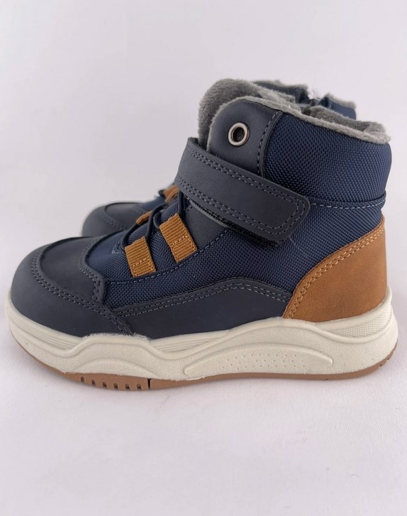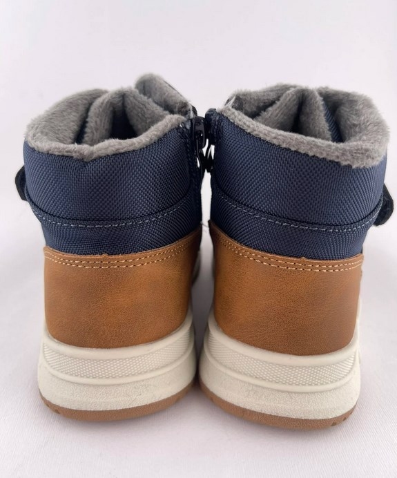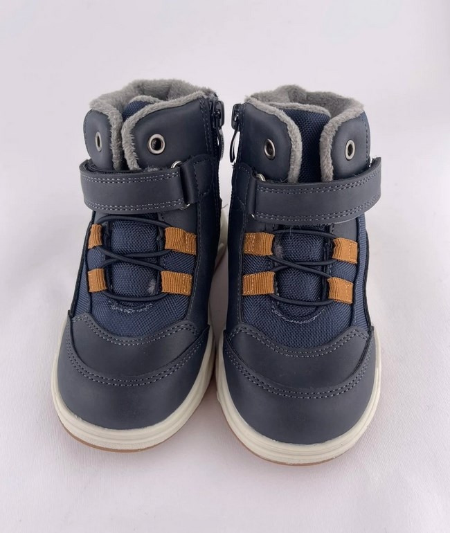 Стильні та теплі зимові черевики у насиченому синьому кольорі — ідеальний вибір для щоденних прогулянок у холодну пору. Виготовлені з якісного еко-шкіряного матеріалу, який легко очищується та захищає від вологи. Внутрішнє утеплення з м’якого хутра забезпечує комфорт і тепло. Зручна застібка на липучці у поєднанні з резинками дозволяє швидко взути взуття та добре зафіксувати його на ніжці. Бічна змійка додає ще більшої зручності при взуванні.Практичні, зручні та теплі — чудовий варіант для активної дитини. -