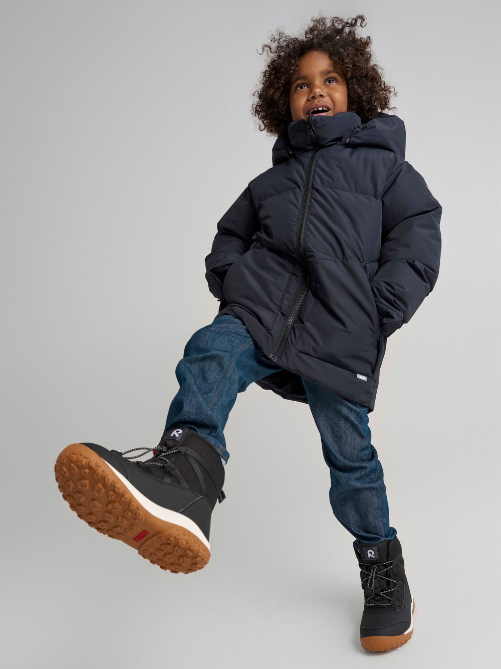Зимові дитячі чоботи Reimatec Myrsky 5400032A, колір 9990 з нової зимової колекції Рейма 2025 – практичне та надійне взуття для зимових забав! Верх цих стильних зимових черевиків виготовлений з телячої замші та поєднання текстилю та синтетичного матеріалу. Завдяки водонепроникній конструкції та напіввовняній підкладці із запаяними швами ніжкам буде тепло та сухо у морозні зимові дні, так що веселі пригоди на свіжому повітрі можуть тривати хоч весь день! За рахунок еластичних шнурків та застібці-липучці черевики легко одягати та зручно регулювати! Малюнок Happy Fit на знімних повстяних устілках допоможе підібрати потрібний розмір або виміряти ніжку дитини, що швидко росте. Гнучка гумова підошва забезпечує міцне зчеплення з поверхнею та не дасть впасти під час ігор.