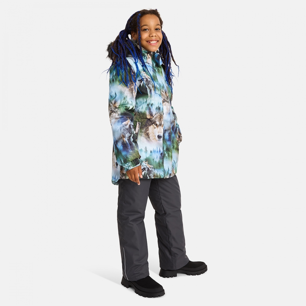 Стильний та витончений зимовий комплект для дівчат Huppa RENELY 3 41850330 з нової колекції Huppa Fashion 2024/2025. Куртка з м'якої мембранної тканини з гарним ніжним принтом має подовжений крій, тому краще захищає від холоду та вітру. Модель добре сідає по фігурі завдяки приталеному силуету. Манжети на рукавах із м'якою окантовкою всередині. Капюшон з хутряним оздобленням застібається спереду на липучках. За бажання можна відстебнути хутро, а також зняти каптур повністю. Плечові шви проклеєні для кращого захисту від вологи. Прямі штани без спинки, зроблені з міцнішої мембранної тканини, застібаються на блискавку і кнопку. Підтяжки регулюються по довжині та легко знімаються. Кроковий шов проклеєний по всій довжині, тому можна кататися з гірки без ризику промокнути. Внутрішні гетри захищають взуття дитини від снігу.